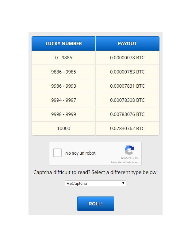¿Qué tenemos que hacer para participar y ganar dinero? Muy facil. Tan solo tenemos que completar el captcha y pulsar sobre el botón ROLL.